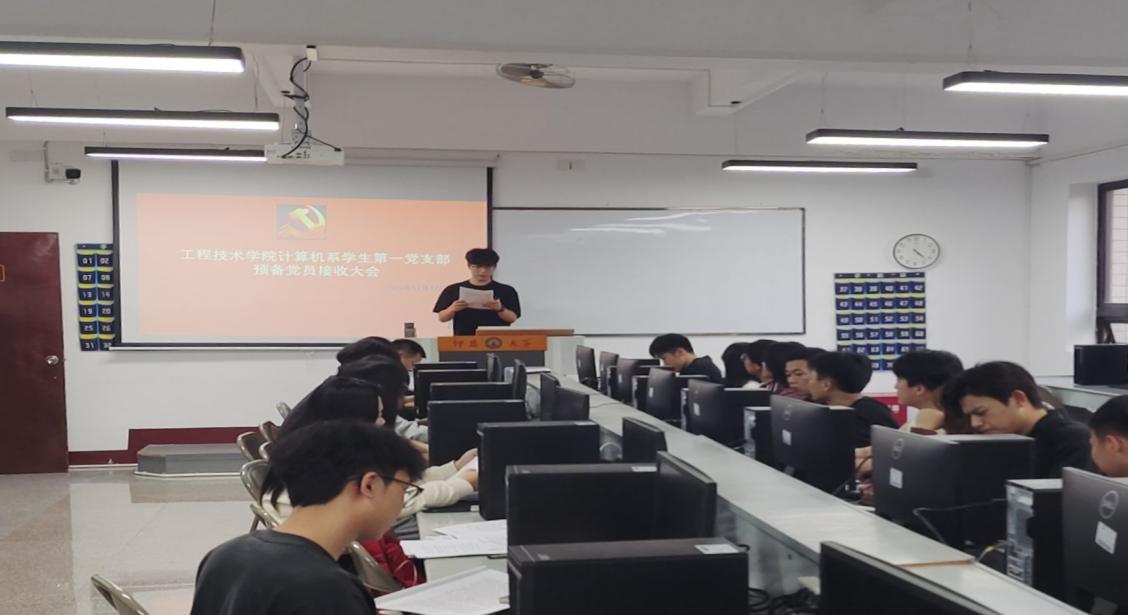 20231211日,计算机系学生第一党支部在泽钏教学楼309教室召开了预备党员接收大会。本次会议由计算机系学生第一党支部书记周添丁主持,支部全体党员参会。