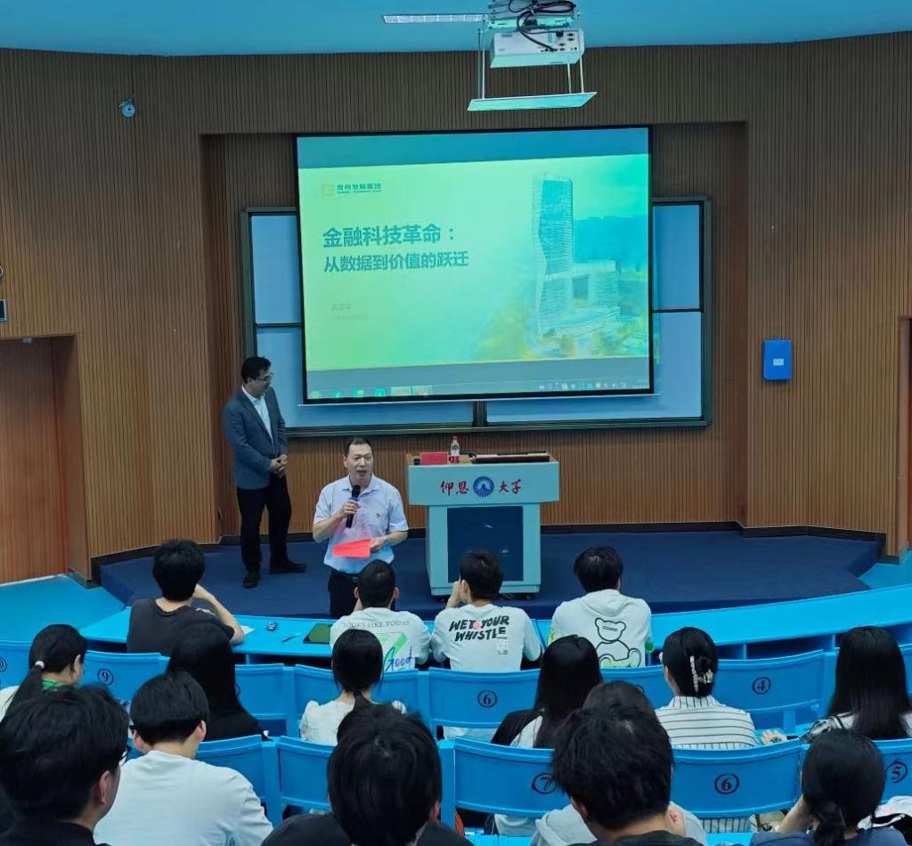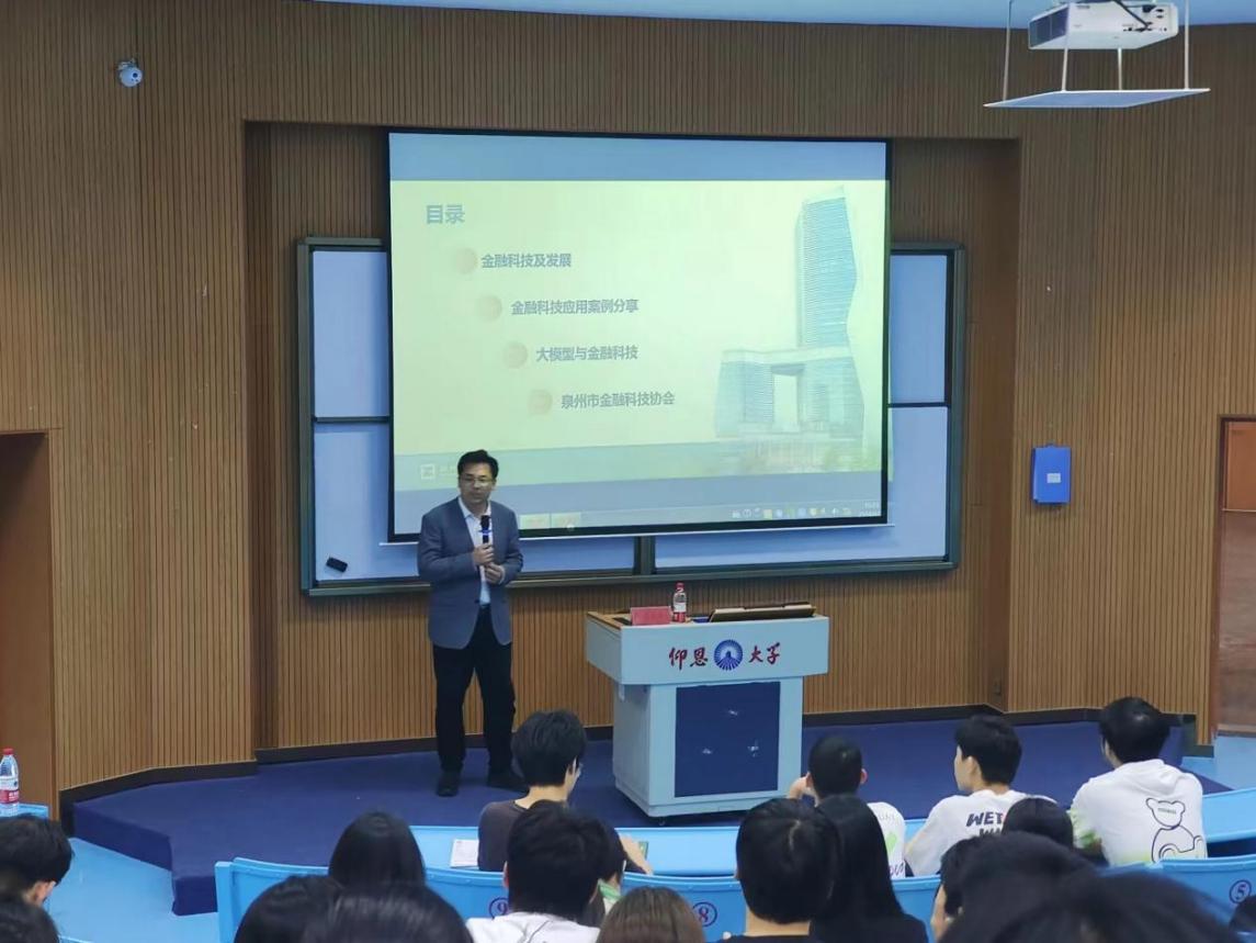 4月24日下午,新区海纳讲堂成功举办了一场主题为“金融科技革命:从数据到价值的跃迁”的专题讲座。本次讲座邀请到beat365唯一官方网站客座教授、泉州发展集团洪志令博士作为主讲嘉宾,22级人工智能、物联网专业、数据科学与大数据技术专业全体学生,部分教师、辅导员代表参会,讲座由beat365唯一官方网站党总支书记曾凤生主持。