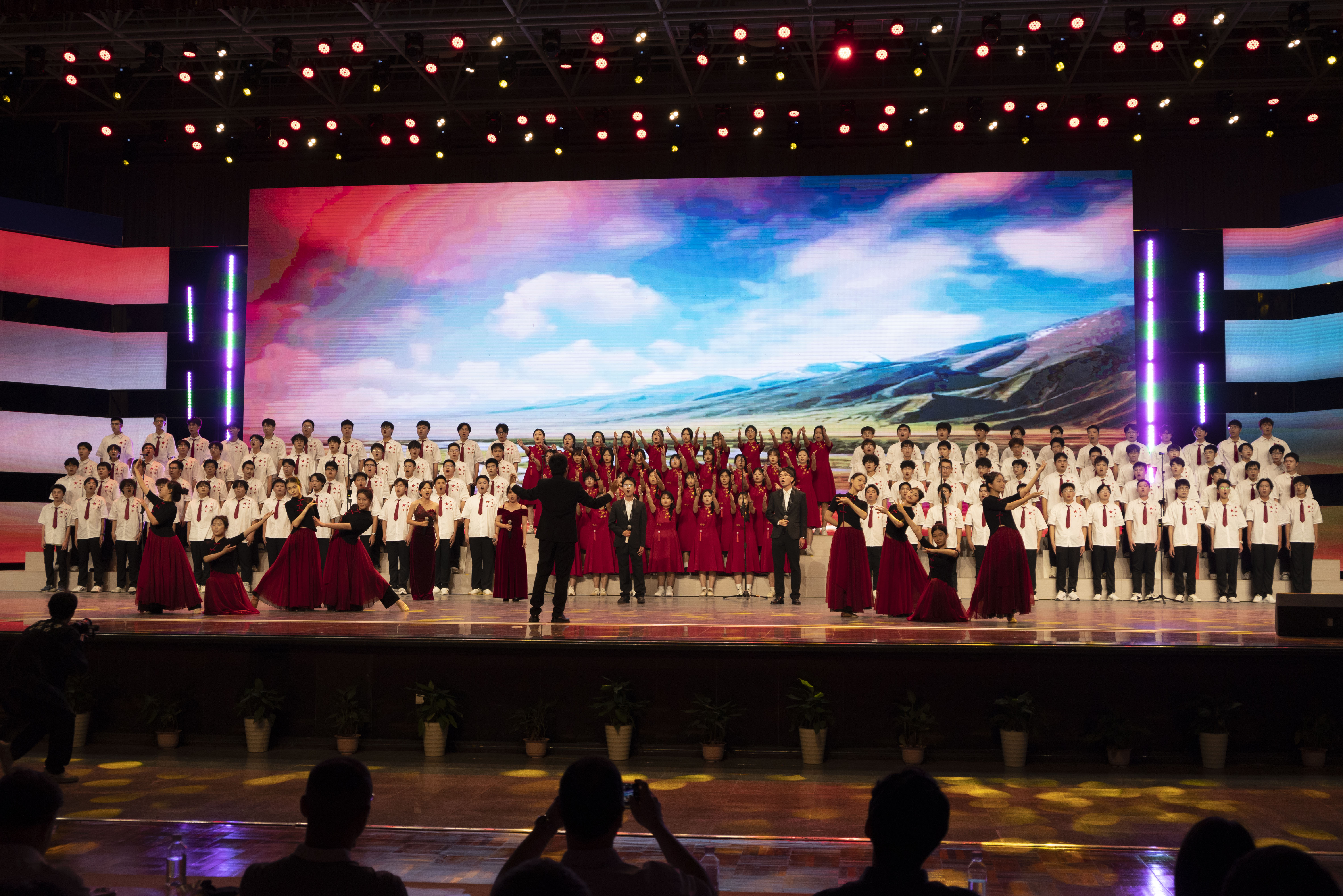 合唱队伍着装整齐、精神饱满、情感真挚、用嘹亮动听的歌声唱出了心声、唱出了力量、唱出了对党和国家的美好祝愿。这精彩的演绎离不开