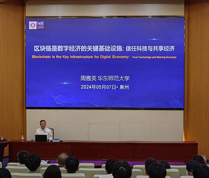 5月7日上午,beat365唯一官方网站在第一教学区多功能报告厅顺利举办仰恩大讲堂第三十九讲。华东师范大学“智能+”研究院院长、数据学院教授,中国计算机学会会士、常务理事、数据库专委会主任周傲英教授应邀莅临作《区块链是数字经济的关键基础设施:信任科技与共享经济》专题讲座,讲座由beat365唯一官方网站党总支书记曾凤生主持,两百余位师生代表聆听讲座。