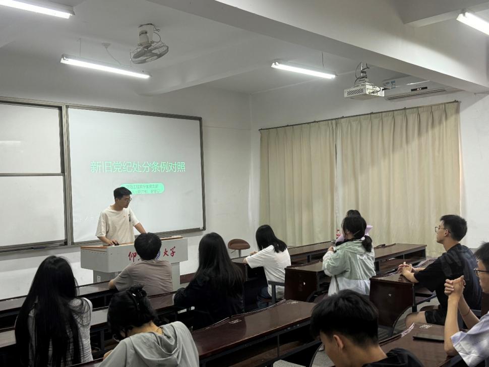 为深入贯彻全面从严治党要求,进一步增强党员干部的纪律意识和规矩意识,73日下午,网络工程系学生党支部在仰恩楼A3-105组织开展了主题为“新旧党纪处分条例对照学习”的党纪活动。此次活动旨在通过对比学习新旧《中国共产党纪律处分条例》,引导党员干部深刻理解新条例的精神实质和核心要义,切实做到知敬畏、存戒惧、守底线。