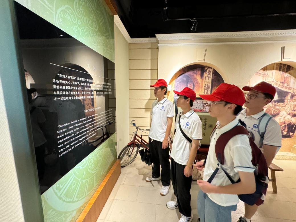 随着讲解员的引导,实践队员们踏入了华侨历史博物馆中。在博物馆中,展陈的历史文物、图片资料、仿古建筑等无一不展示着华侨文化的辉煌与悠久。在参观过程中,队员们不仅仅是旁观者,更是积极参与者。他们认真倾听讲解员讲解,仔细观看每一件展品。民族自豪感油然而生,对于祖辈、父辈的移民漂泊生涯更加敬重了几分。