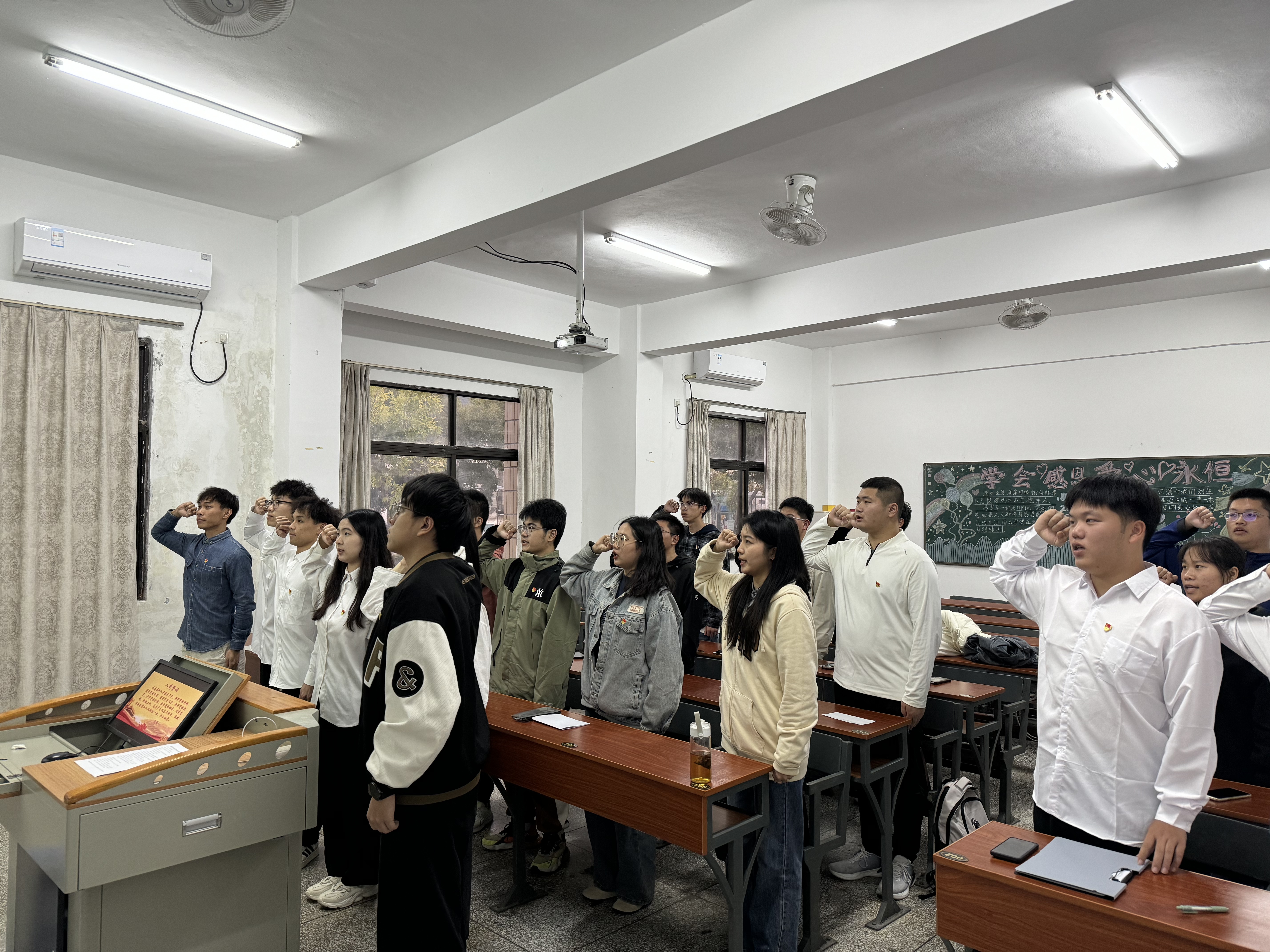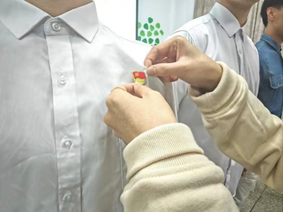 根据票决结果,大会同意接收欧阳翔、洪毅翔、陈易、苏靖澜、胡森5名同志为中共预备党员。支部书记陈慧敏同志对他们表示祝贺,并他们佩戴党徽。一枚枚党徽在新党员的胸前闪耀,接着新接收的预备党员们在领誓人方勉同志的带领下庄严宣誓。誓言铿锵有力,这是他们对党的神圣承诺,也是开启人生新征程的起点。