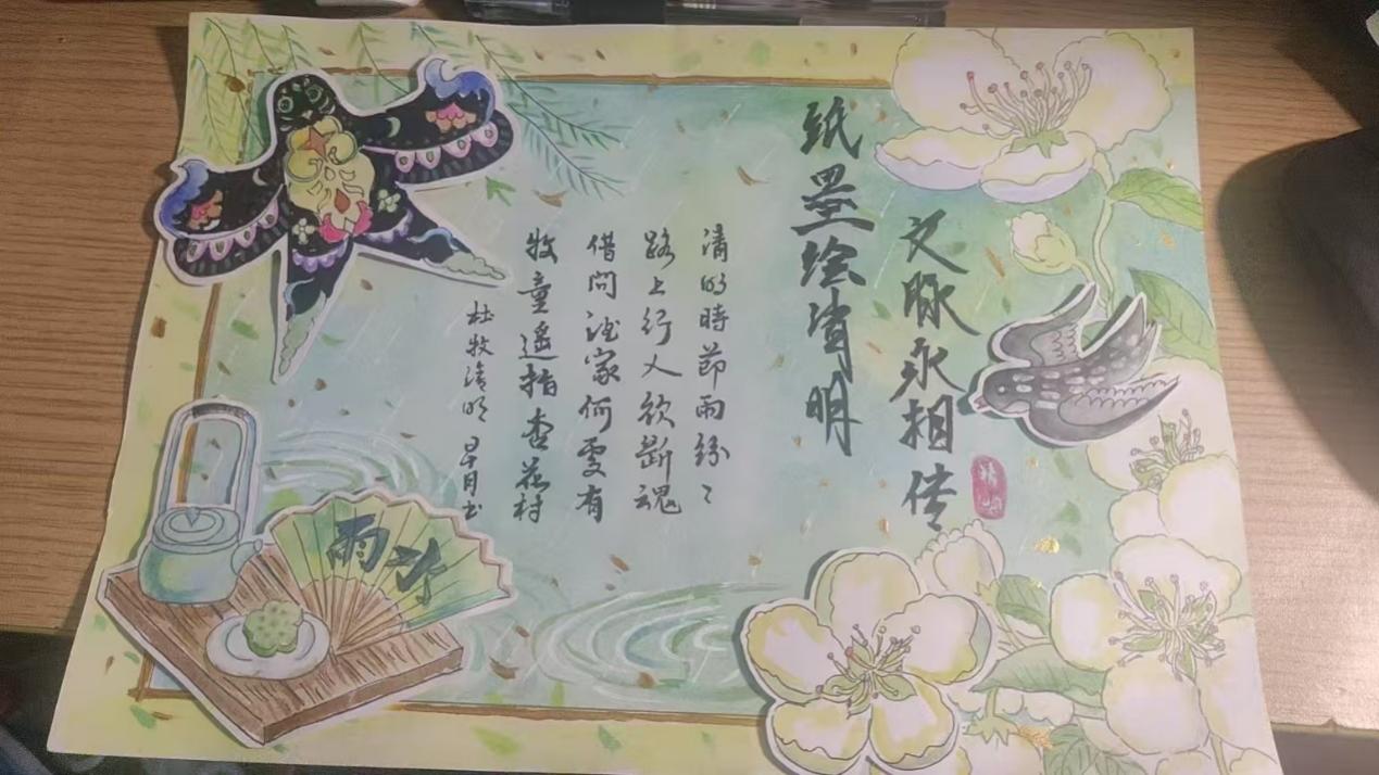 活动伊始,同学们积极参与,充分发挥自己的想象力和创造力。大家查阅大量资料,深入了解清明节的历史渊源、民俗活动以及在现代社会的意义,将其融入到手抄报创作中。有的同学用细腻的笔触绘制出清明时节人们祭扫先人的场景,展现出对先辈的缅怀之情;有的同学则用鲜艳的色彩描绘出春日里的桃花、垂柳等元素,展现清明时节万物复苏的勃勃生机;还有的同学结合现代环保理念,倡导文明祭扫,为传统节日注入新的内涵。
