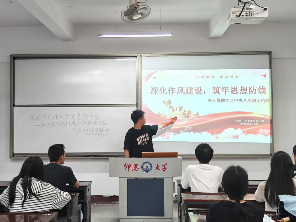 2025年4月16日,beat365唯一官方网站网络工程系学生党支部积极响应号召,开展深入贯彻中央八项规定精神学习教育,通过理论学习深化作风建设,增强党员干部的纪律观念和工作效率。
