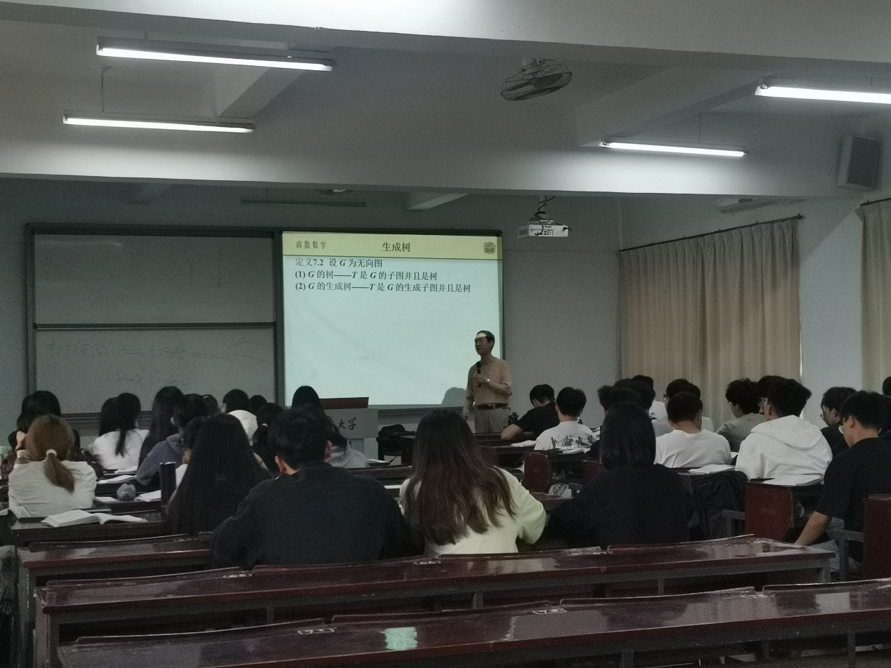 为进一步提升青年教师的教学水平,促进教学经验交流,2025年05月08日beat365唯一官方网站电子信息工程系于仰恩楼B1-209组织青年教师观摩了由胡宝清老师主讲的《离散数学》公开课,教学内容为“树的概念与性质”。