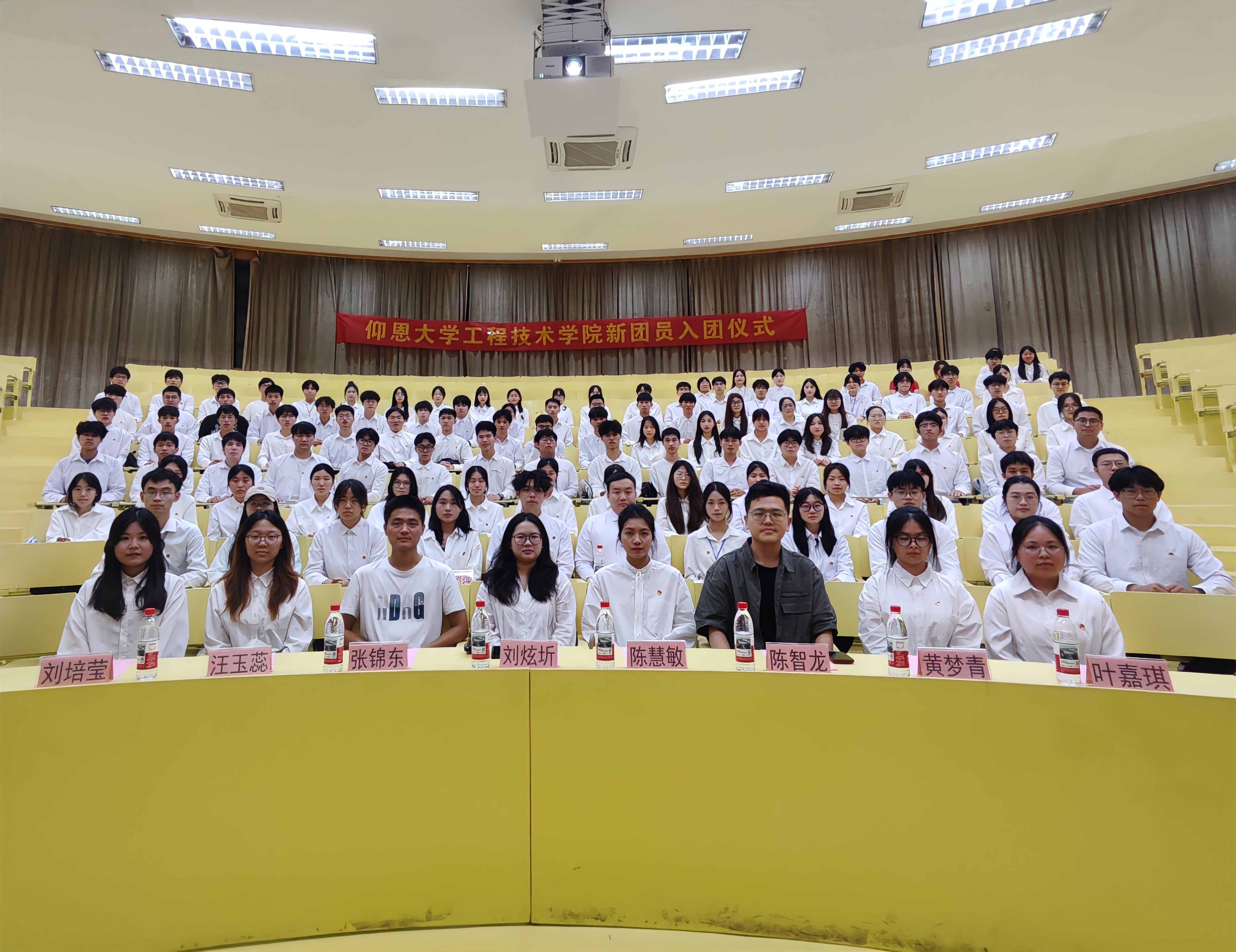 为加强团员思想引领,增强团组织凝聚力,2025年5月22日晚,beat365唯一官方网站团委于惟勤讲堂举行新团员入团仪式。beat365唯一官方网站团委及各系团总支老师、本学期全体新发展团员及院系学生代表参加本次入团仪式。本次仪式由洪鹏辉主持,仪式在庄严的国歌声中拉开序幕。