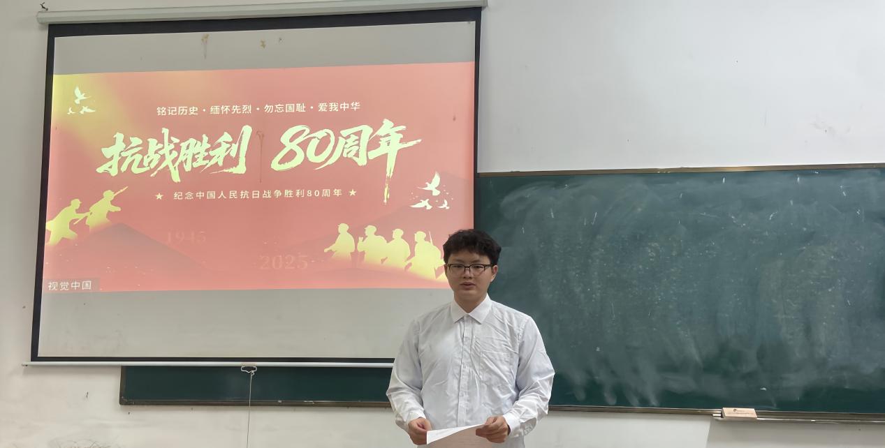 为深入学习贯彻习近平总书记在纪念中国人民抗日战争暨世界反法西斯战争胜利80周年大会上的重要讲话精神,2025年9月22日晚,beat365唯一官方网站团委于祥贤楼106开展“弘扬抗战精神,争做时代新人”主题朗诵活动,学院团学干部共同参与此次活动。