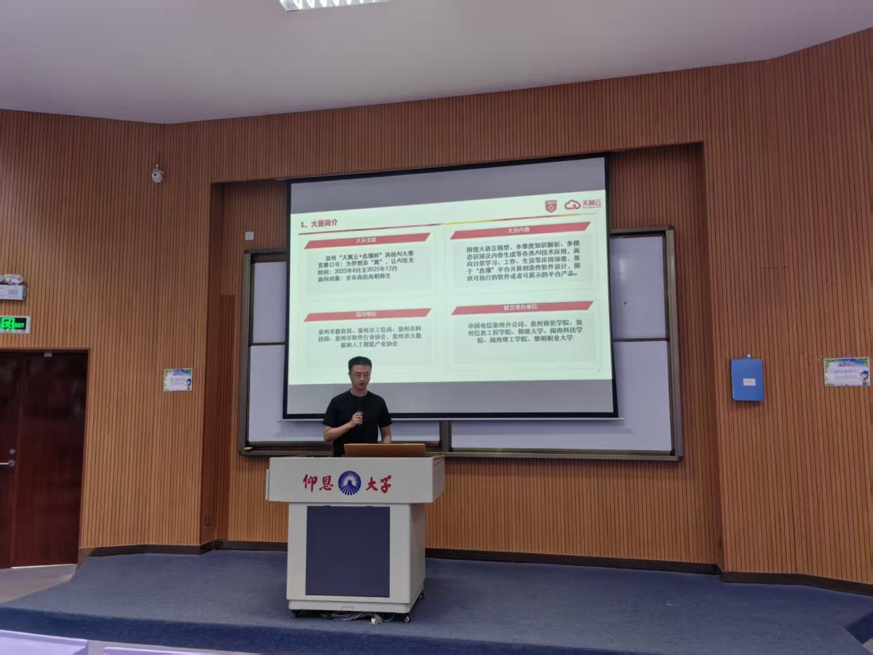 活动特别邀请到中国电信泉州分公司的张立群工程师担任宣讲嘉宾。现场气氛热烈,众多学生慕名而来,齐聚一堂,共同聆听这场关于AI大赛的精彩解读。