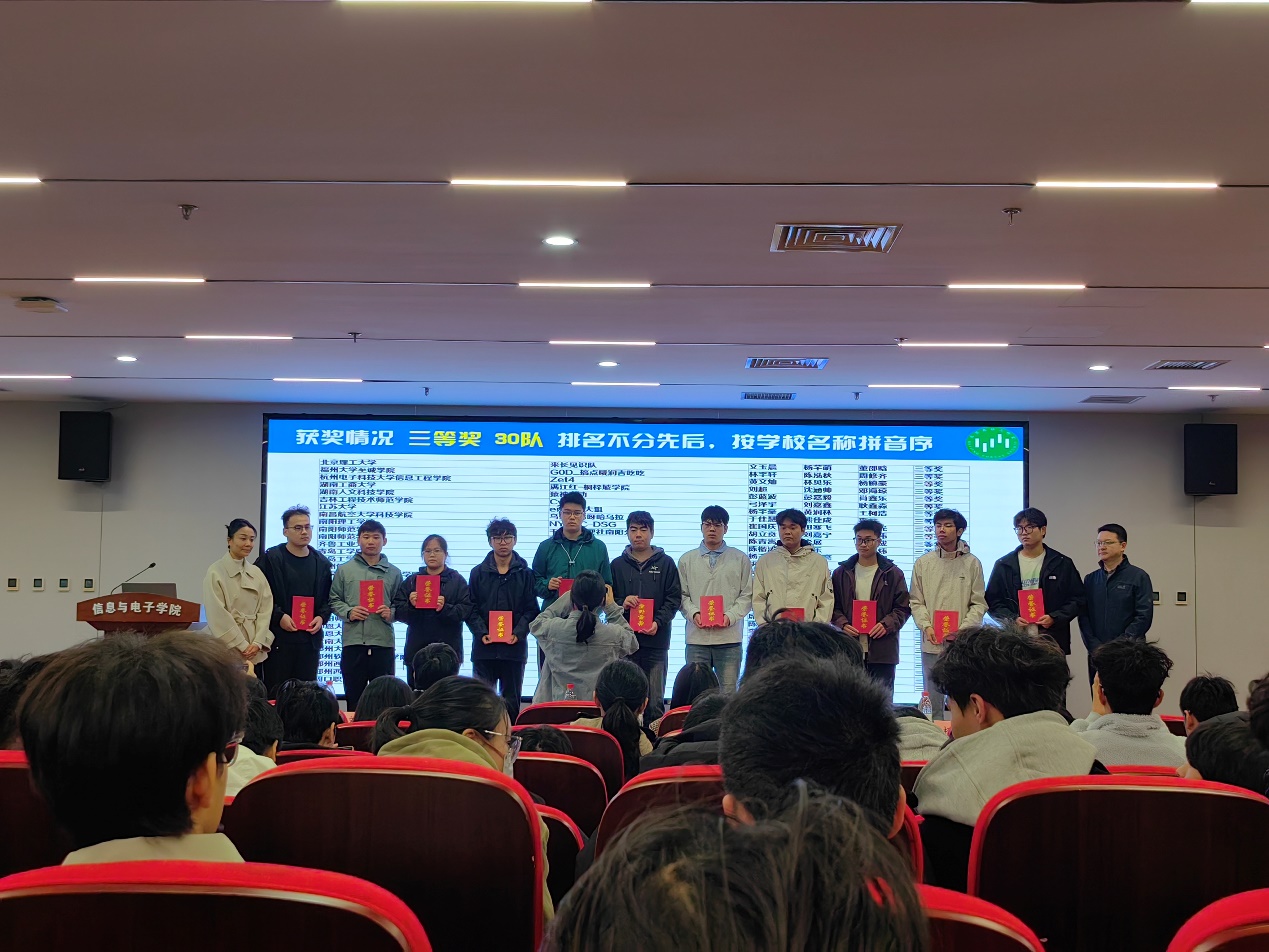 我校获奖选手代表上台领奖留影