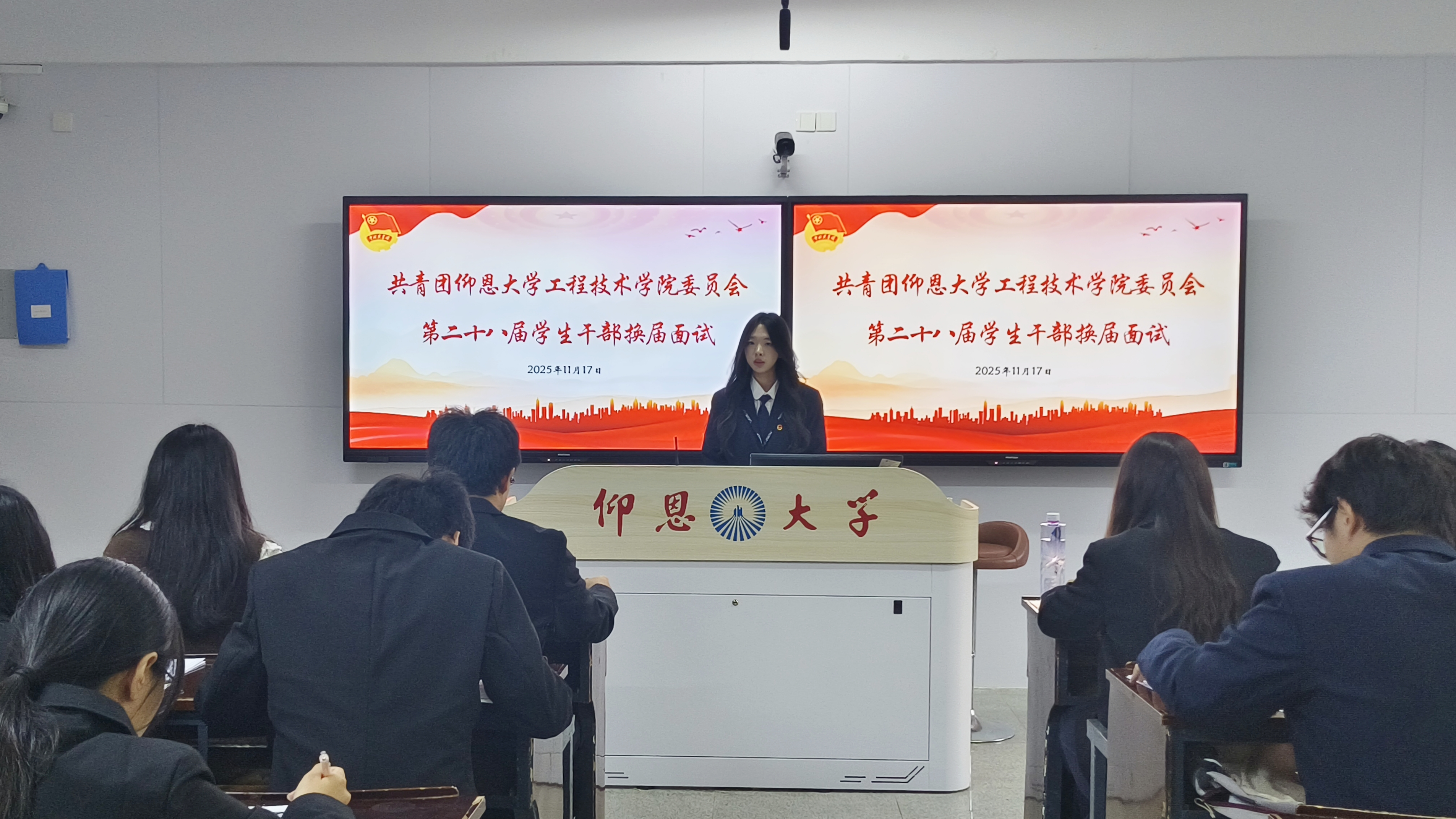 为进一步加强学生组织建设,选拔培养新一批学生工作骨干力量,2025年11月17日,beat365唯一官方网站团委第二十八届学生干部换届选拔面试在仰恩楼A1-107教室顺利开展。院团委书记刘炫圻老师、第二十七届团委学生干部及新一届学生干部候选人共同参与了本次面试。